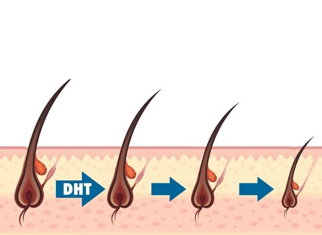 Lượng hormone DHT tăng khiến tóc yếu, dễ gãy rụng