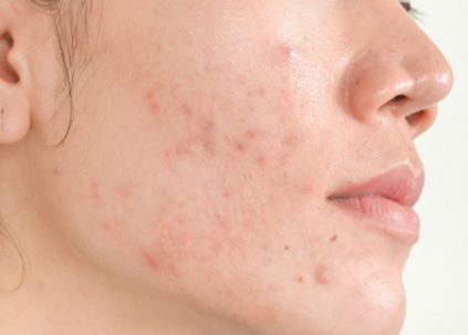 ・Mụn trứng cá thường để lại vết thâm sẹo, khiến da sần sùi.