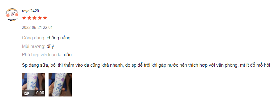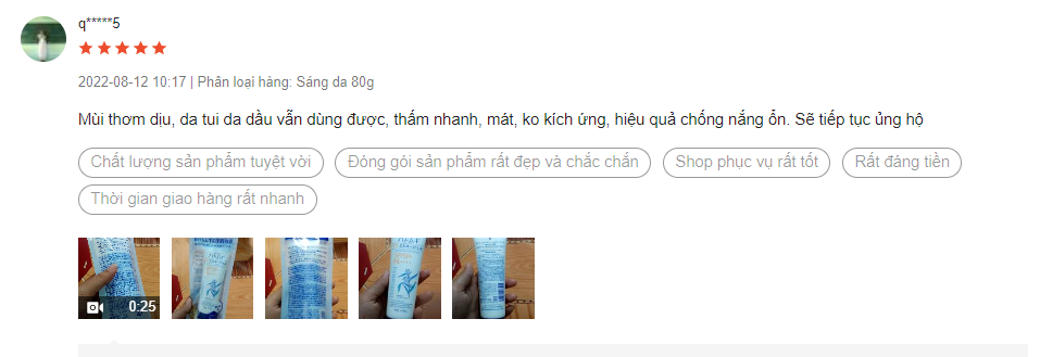 Sau khi sử dụng sản phẩm sữa chống nắng Anessa dành cho da nhạy cảm, người dùng đã có những nhận xét như sau: