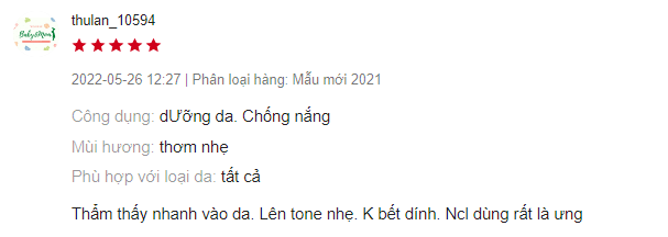 Người dùng đánh giá sản phẩm chống nắng và nâng tone ổn, mùi không hắt và phù hợp với loại da hỗn hợp thiên dầu.