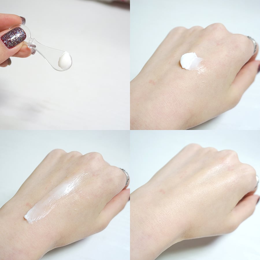 - Nhiều thành phần dưỡng nên dễ gây bóng nhẹ khi vừa thoa lên da, tuy nhiên sẽ tệp vào da sau 5 - 7 phút.