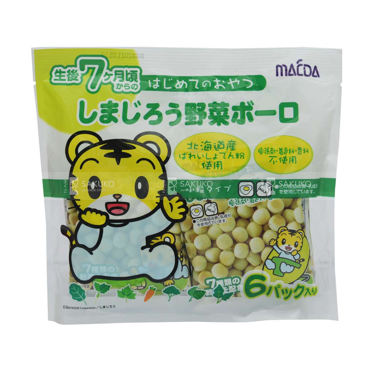Tại Sakuko, bánh ăn dặm Maeda cho bé của Nhật có 2 loại là bánh vị rau và bánh vị trứng phù hợp với độ tuổi từ 7 tháng trở lên.