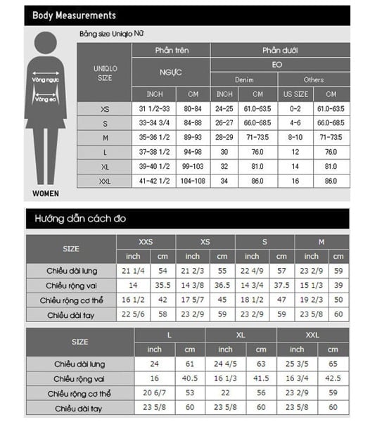 Cách chọn size áo quần Uniqlo cho nữ giới: