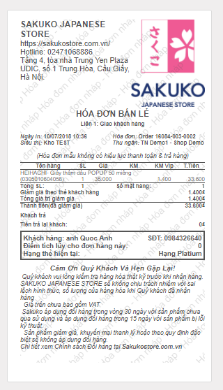 9. Hóa đơn của Sakuko Japanese Store có đủ các thông tin như: website, số điện thoại, logo,... khớp với hình ảnh phía dưới để chắc chắn bạn đang mua hàng đúng địa chỉ tin cậy.