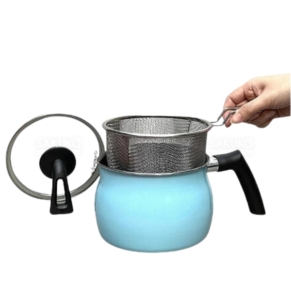 - Nồi chiên Kaiyo cũng có thể dùng cho các món luộc, nấu... với giá vớt inox 304 đựng thực phẩm để chiên rán, đựng rau củ quả luộc. Vung nồi thiết kế tự đứng siêu tiện lợi, giúp giữ vệ sinh trong quá trình chế biến.