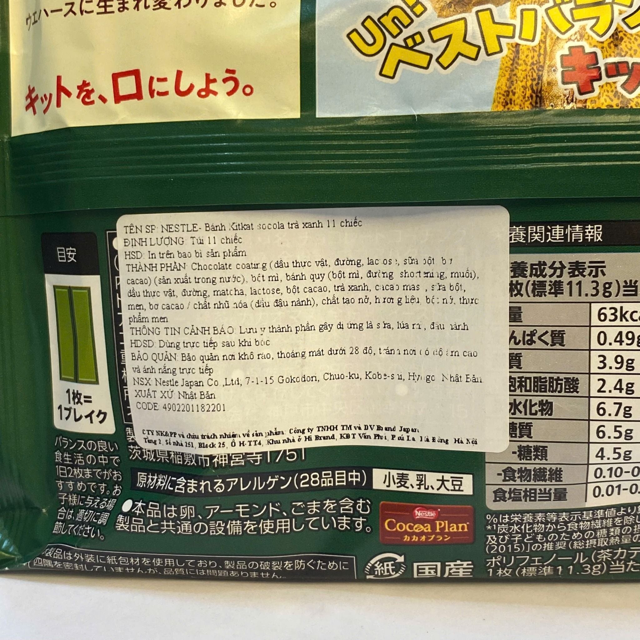 NESTLE- Bánh Kitkat socola trà xanh 11 chiếc
