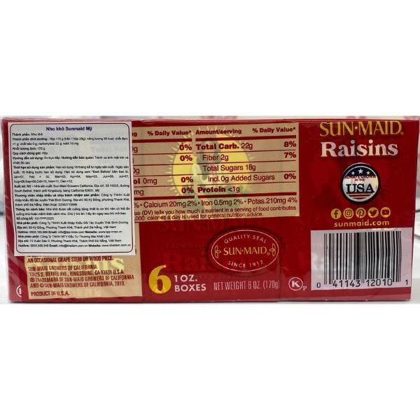SUNMAID- Nho khô 6 hộp nhỏ 170g